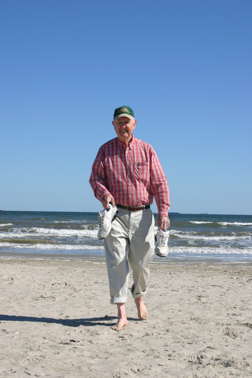 There we were kicking about Galveston for the day. Dad took us to the Moody Gardens to explore the rain forest exhibit, then down to the beach just to walk around. He said east Galveston beach is one of the few places he can take off his shoes and walk barefoot. Now I know where I get my propensity to wear shoes all the time from. There are very few places I feel comfortable taking my shoes off and going barefoot. And yes, Galveston beach is one of them. The sand is extremely soft.