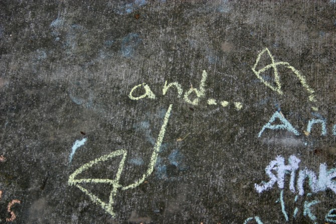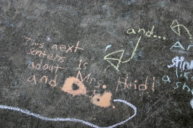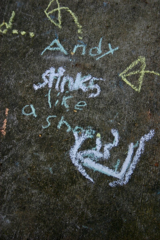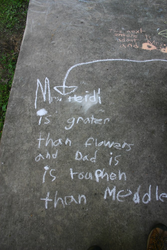 This one is from the archives, and was written by our youngest son, Joey. Thankfully, he added arrows to his message so we could follow it. (Photos take July 2015).