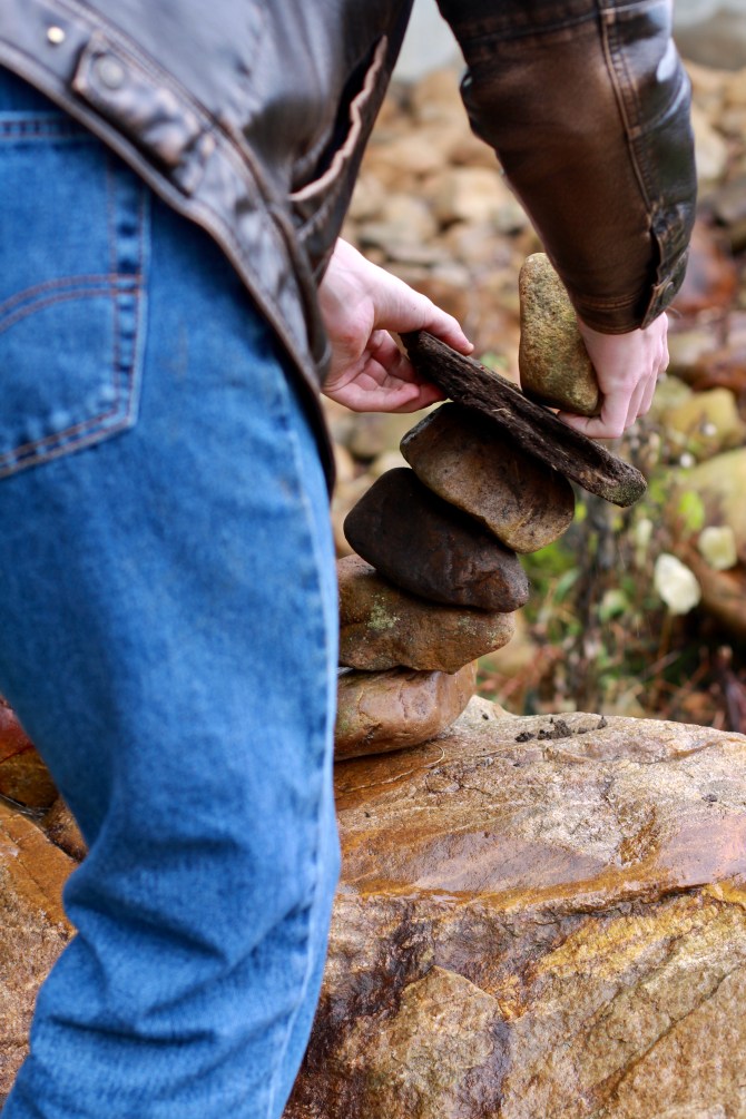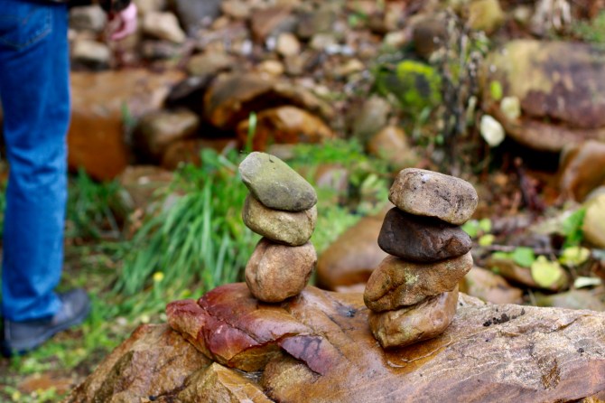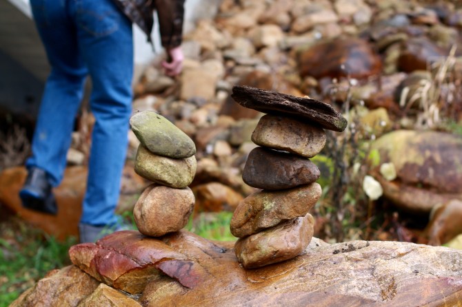 Apparently, stacking rocks next to a river, has become some sort of fad. I first discovered stacked rocks at the Llano River in Texas earlier in the year. You can see my post here. While walking along the Doe River in Elizabethton, TN, the boys and I discovered a single pile of rocks. That was enough encouragement for the boys to start their own stacks.