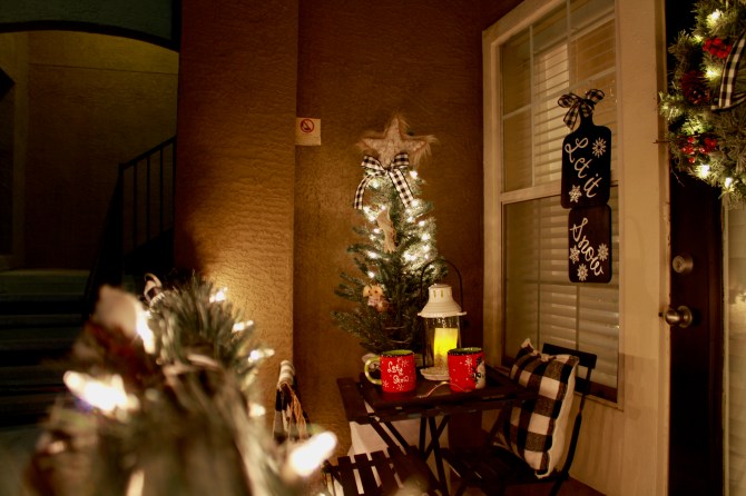 Our apartment complex has a contest every year to see who can put up the best Christmas decorations on their balcony. Heidi and I felt like our neighbor’s was the best. It was classy. Most people did a great job tackling gaudy, with a neon assault on the senses. Our neighbor went for a classic look, and I think she nailed it.