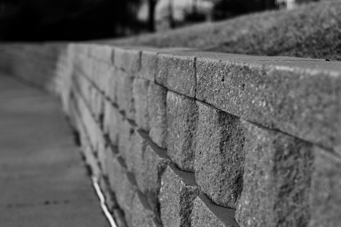 I know, some might ask why I spent time taking pictures of a retaining wall. I liked the visuals that that I found with the wall. I hope you can see what I was looking for. The second and the fourth shots are the most visually appealing, in my opinion.