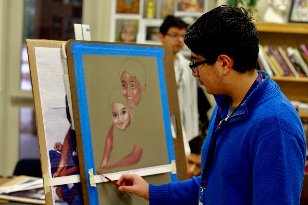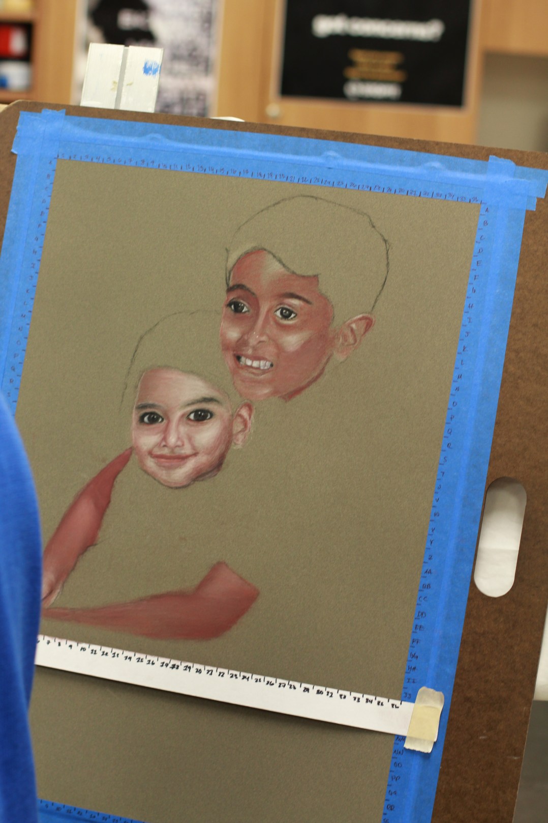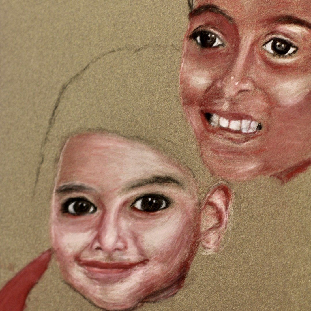 The eyes follow you. That is what I first noticed about Rohan’s artwork. No matter where I stood, the eyes of the child were looking right at me. I told him he did a fantastic job on the little girl’s eyes. He replied, “that’s not a little girl. That’s me.”