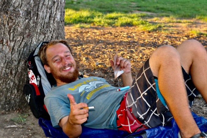 He was just laying there, against the tree, not moving much with a smile on his face. I could tell that Dylan was glad for the conversation when I walked up to him and asked if I could take his picture. And we did have a conversation. After sharing a bit about Christ, he immediately launched into a rant against the evil Christians who lock up people in cages for just sleeping out on the street, stealing so they could eat, or smoking a little marijuana.