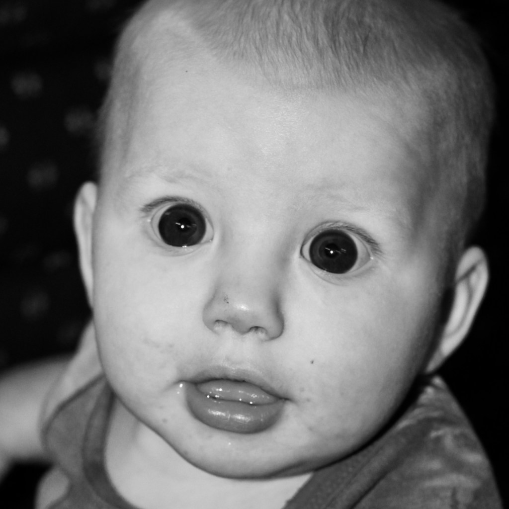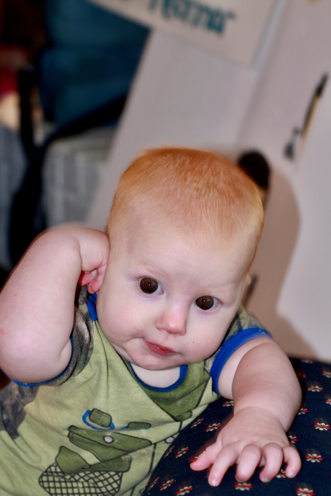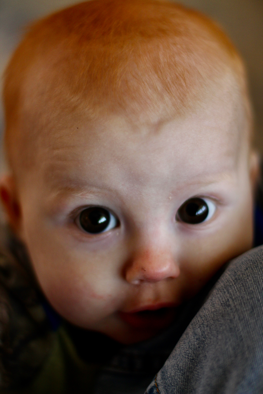 In my last post, I mentioned that I had a purpose in bringing my camera to the Reformation Day celebration. The purpose was Revere. When I met him in church, and saw his eyes, my first thought was that I needed to get my camera. Reformation Day provided the excuse. He has the biggest eyes of any baby I think I have ever seen. His mother informed me that it runs in the family. Revere’s grandfather had the same big eyes.