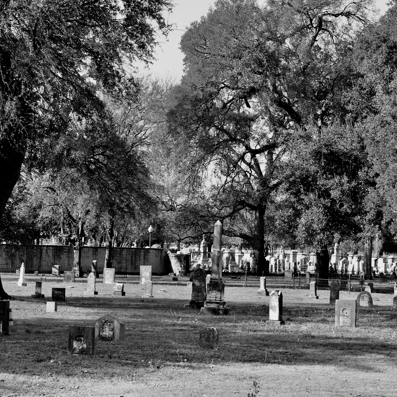 The subject is the First Street Cemetery that I was walking by near the Brazos River. My favorite picture is the one just below: Private First Class Joseph Cross. I wonder if the tree that his grave is under, was there when they buried him in 1919. It looks peaceful.