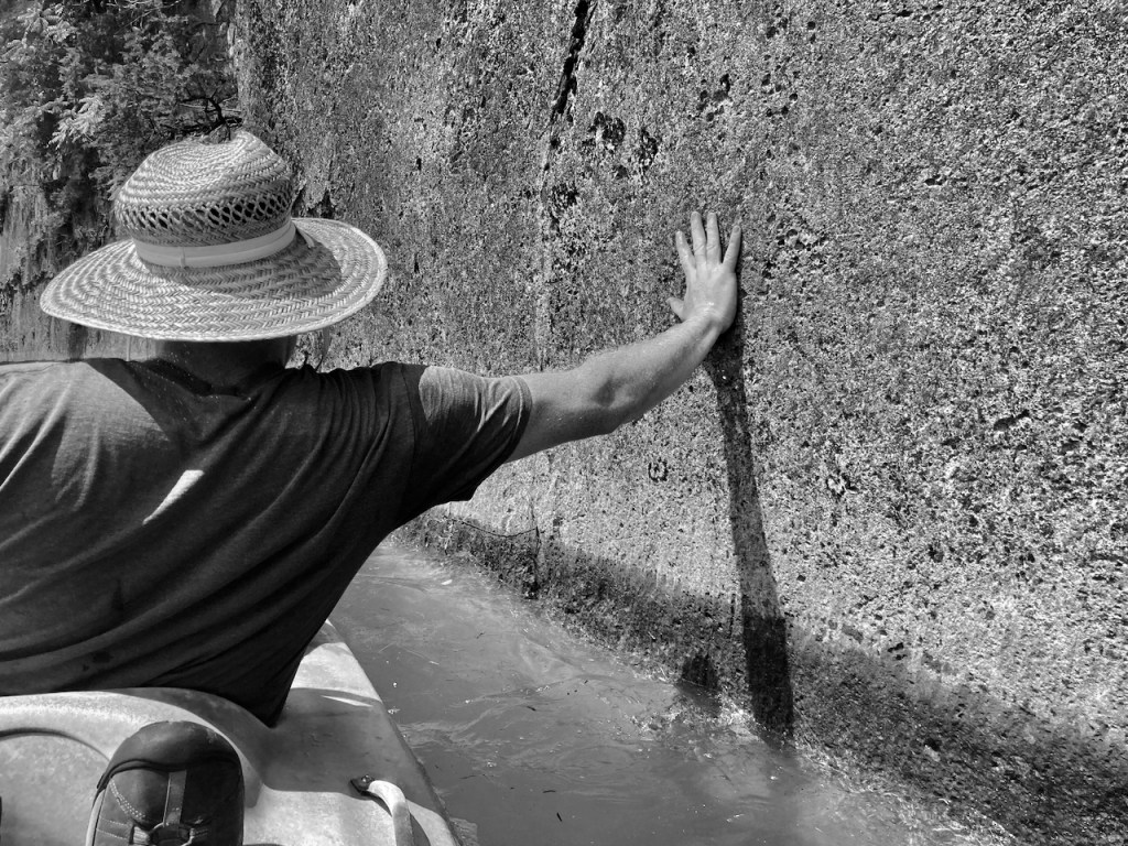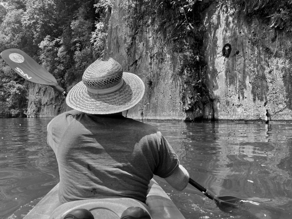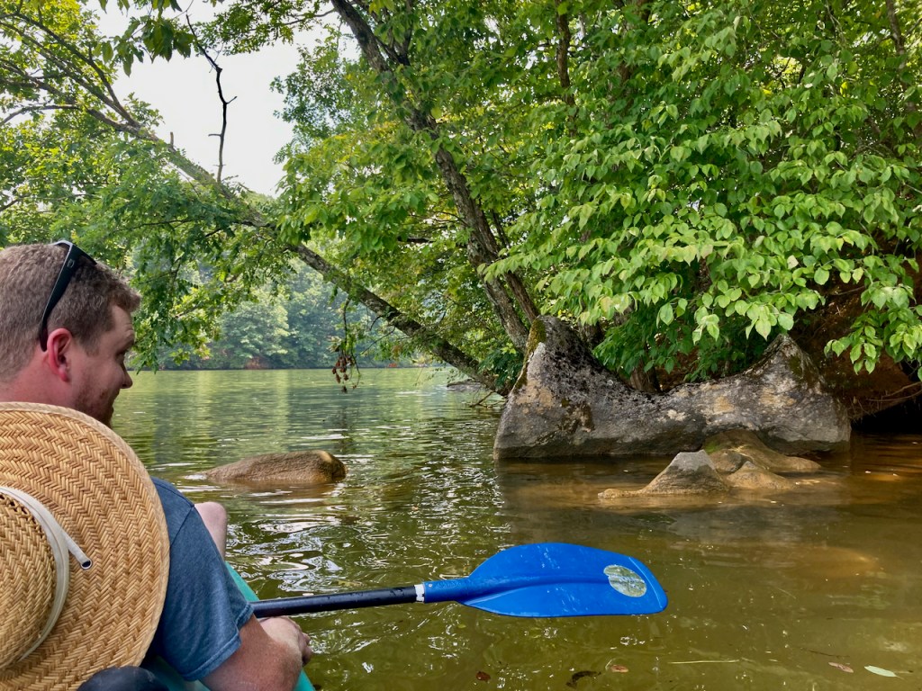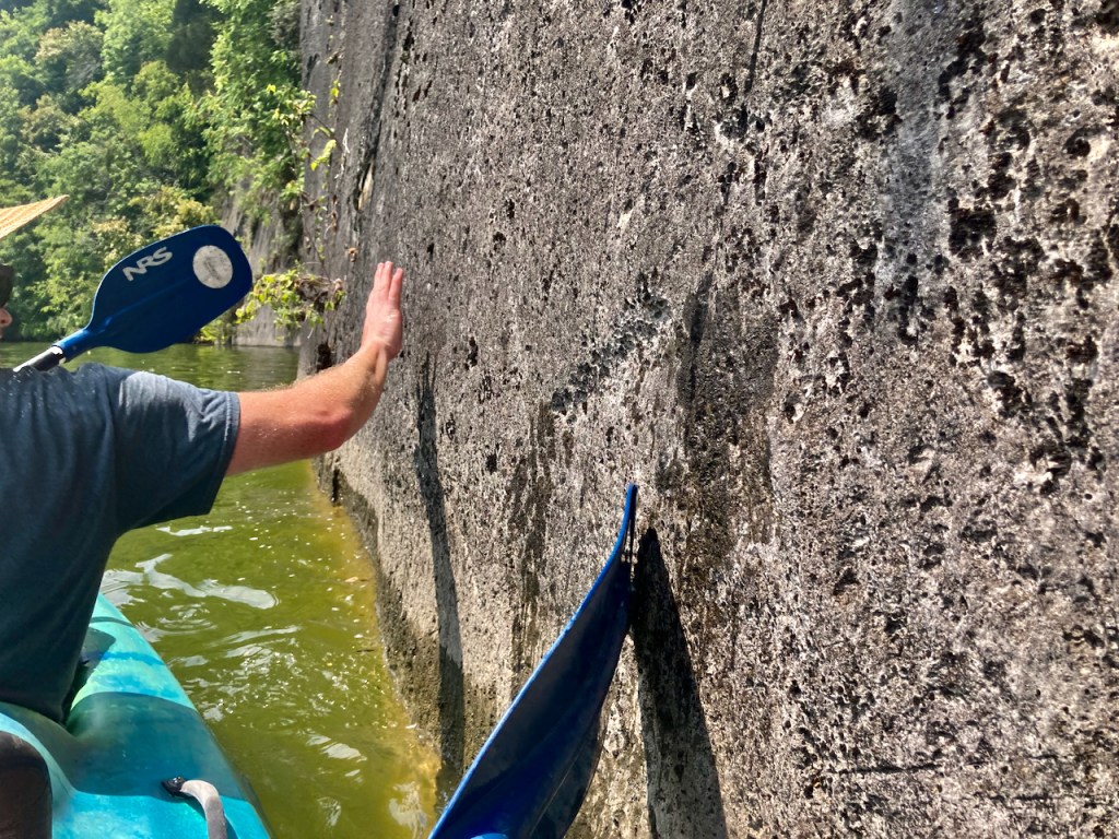 Last Saturday, my son-in-law, Justin and I, rented a kayak on Fort Patrick Henry Lake for a couple of hours. We had to leave our mark on the cliff wall. We did so in an environmentally friendly way.