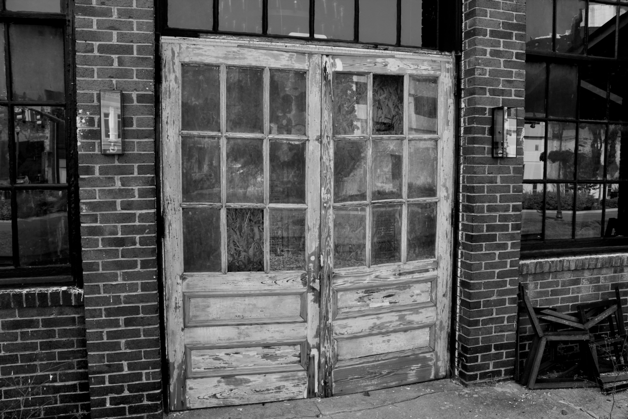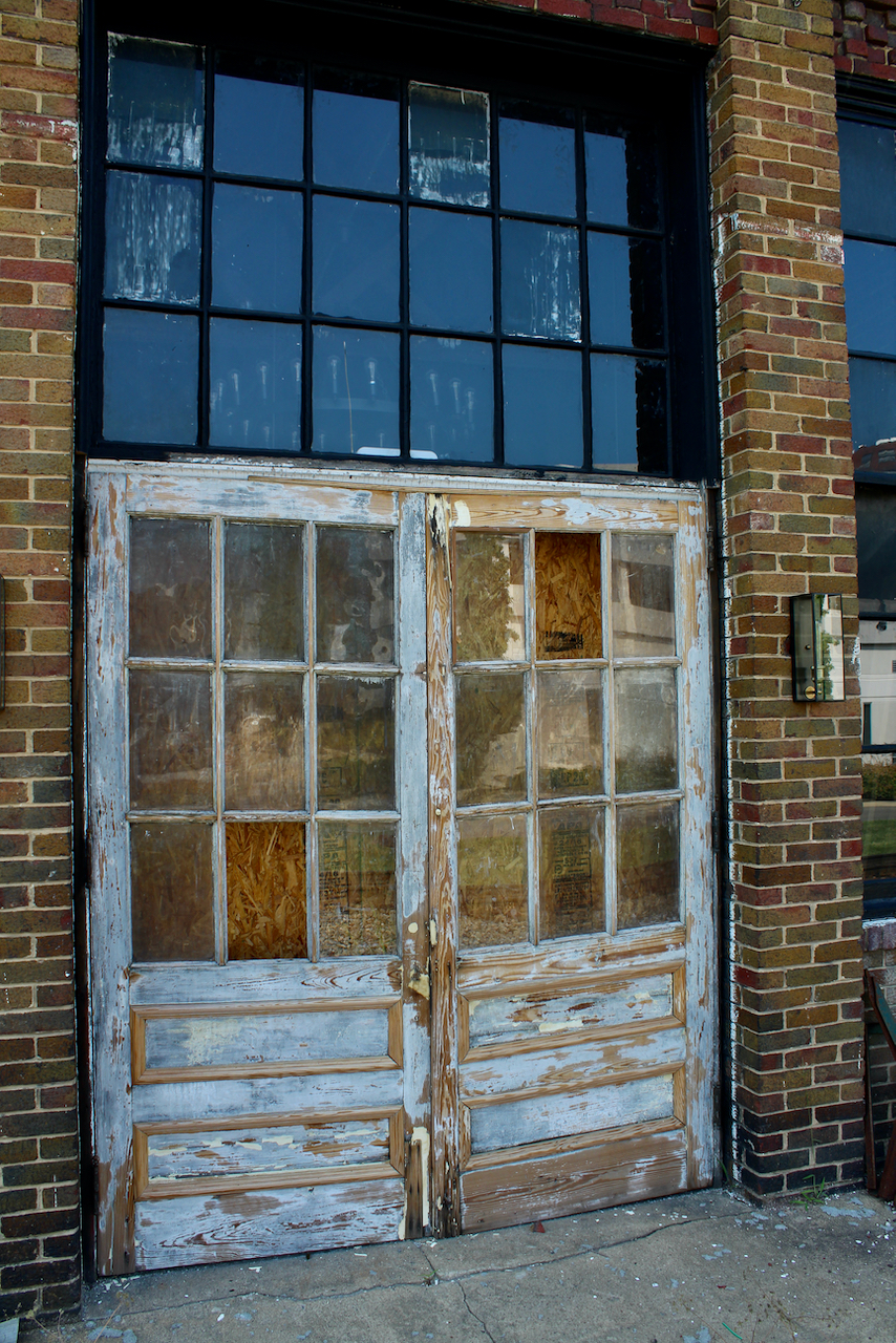 I knew I found a goldmine in the world of door photography when I tuned the corner in downtown Johnson City. I had just taken the pictures for Thursday Doors — The Trek Shop. The goldmine doors were in the building along the railroad track and have the look indicating that at some time, the good citizens of Johnson City tried to turn these buildings into storefront property. The dream faded, along with the doors, giving them the character and texture I love in old doors.