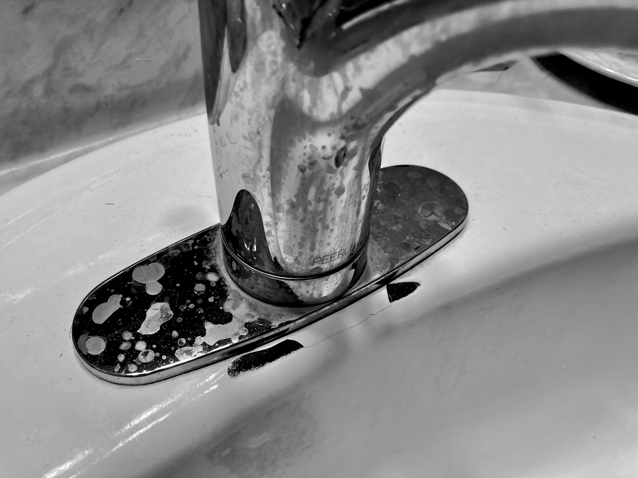 I’ve never seen anything like it, but our sink started to shatter. Nothing big, but the pieces were all over the counter top. So I took a picture to show management.
