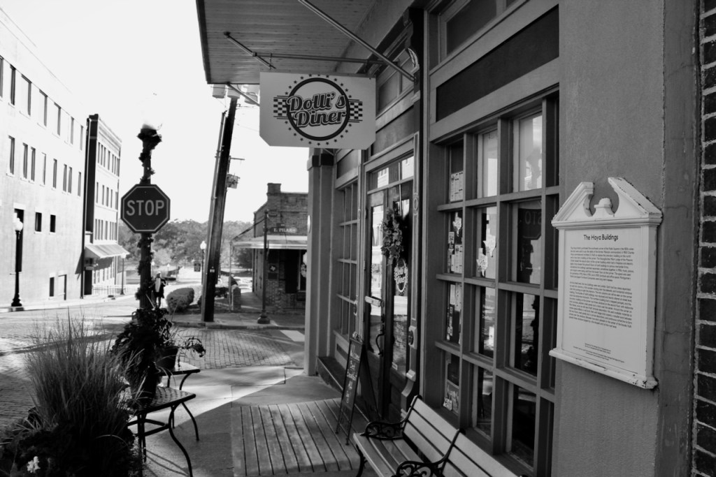 Heidi and I parked with the intentions of eating at Dolli’s Dinner on the square in Nacogdoches. But we didn’t. Given that our diet is restricted, Dolli’s didn’t offer anything we could eat. Not that we didn’t want to eat there. But we knew that if we did… our weight would go up. It was that kind of cuisine.