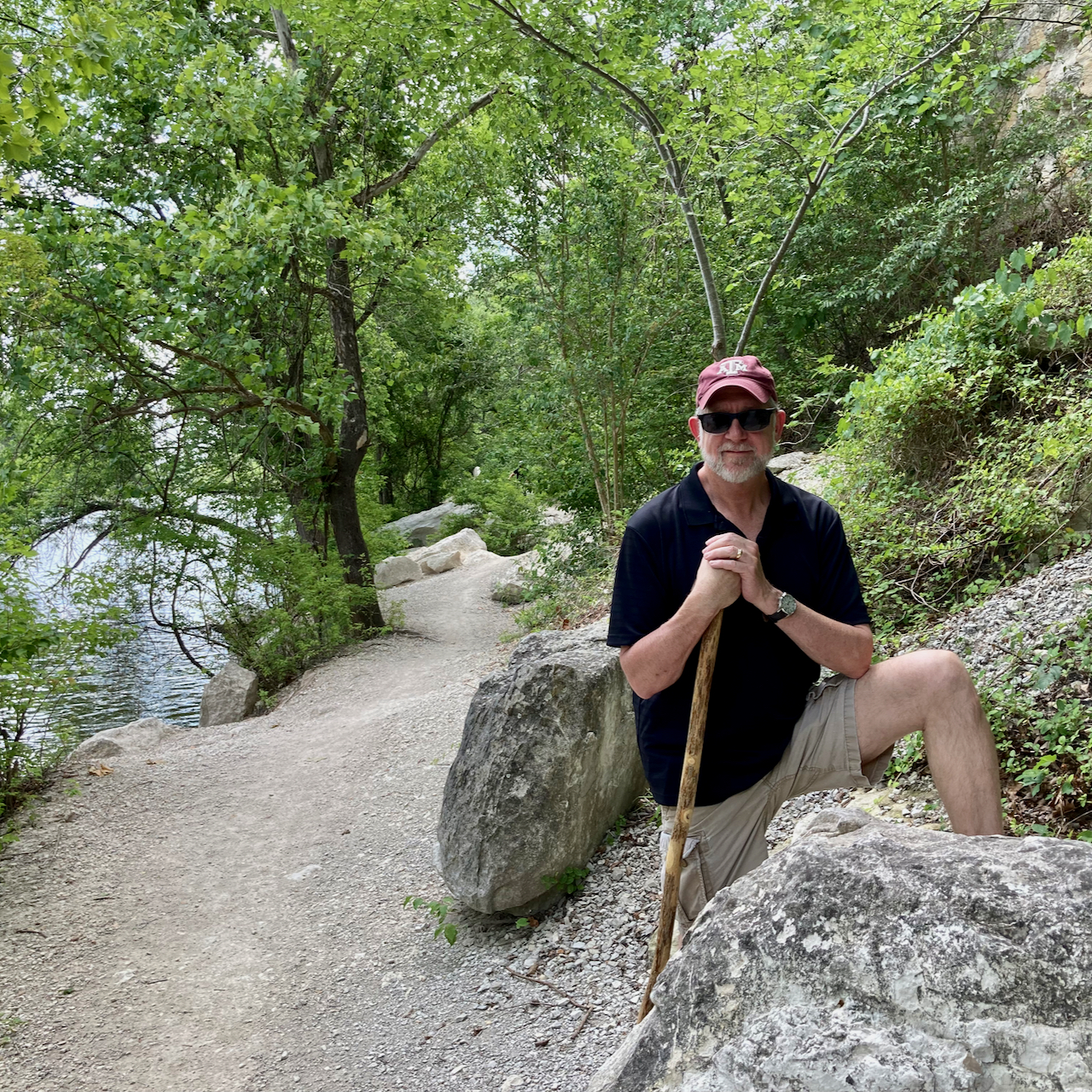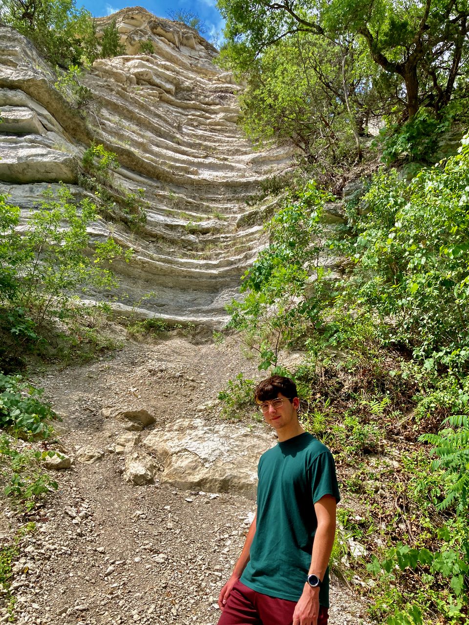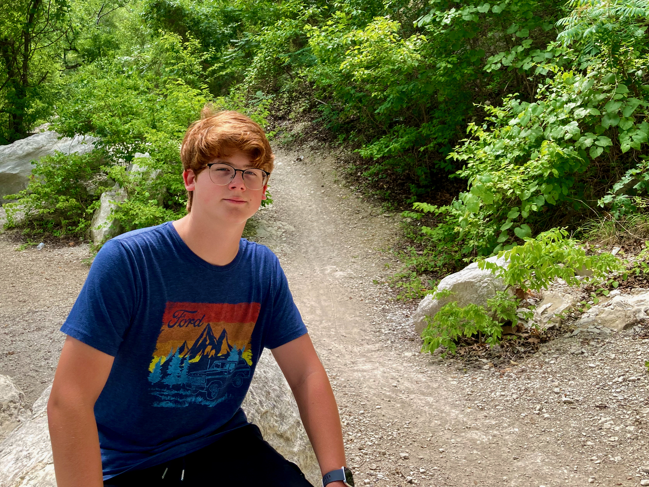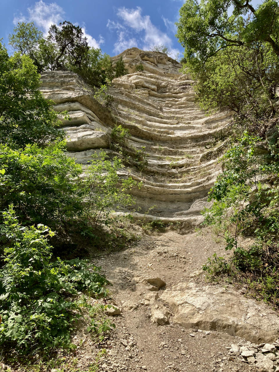 My boys and I went for another one of our walks along the Brazos River on Monday. We’ve been down this path many times, but not when it was this green. It made the whiteness of the boulders (and sadly my legs), really pop out.