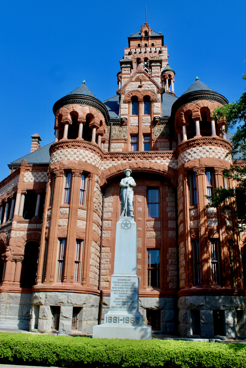 According to the historical website, the author James A. Michener writes about the Ellis County Courthouse in Waxahachie, TX: “A fairy tale palace…replete with battlements and turrets and spires…and miniature castles high in the air… one of the finest buildings in Texas.”