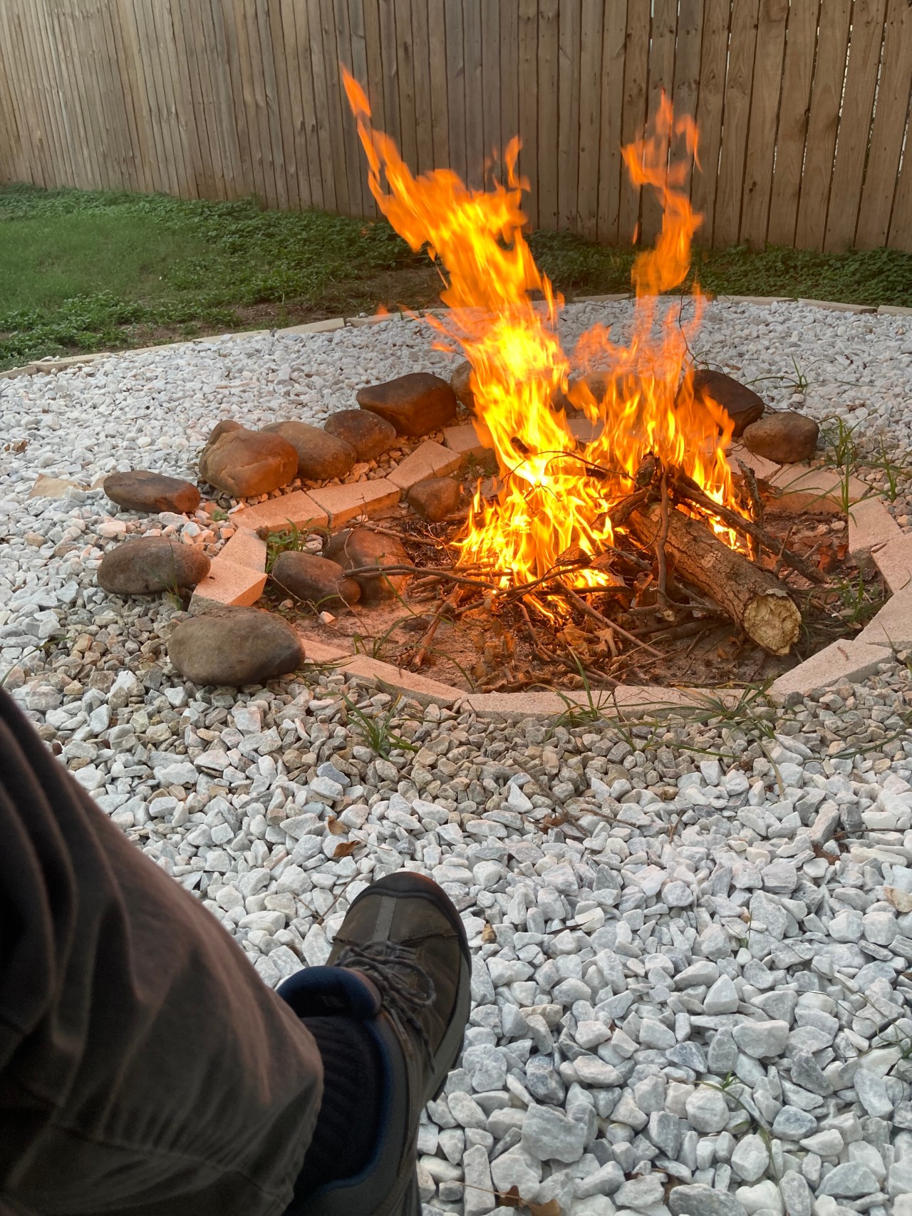 Got home after work on Tuesday, and was tired. I didn’t feel like doing much, but sitting out on our back deck and enjoying the evening. I hadn’t planned on it, but the call of the empty fire pit was too much. So I started a small fire and enjoyed it for half an hour. It was the first fire in the fire pit since we moved into our new home.