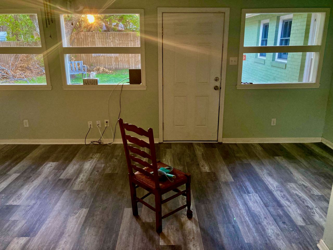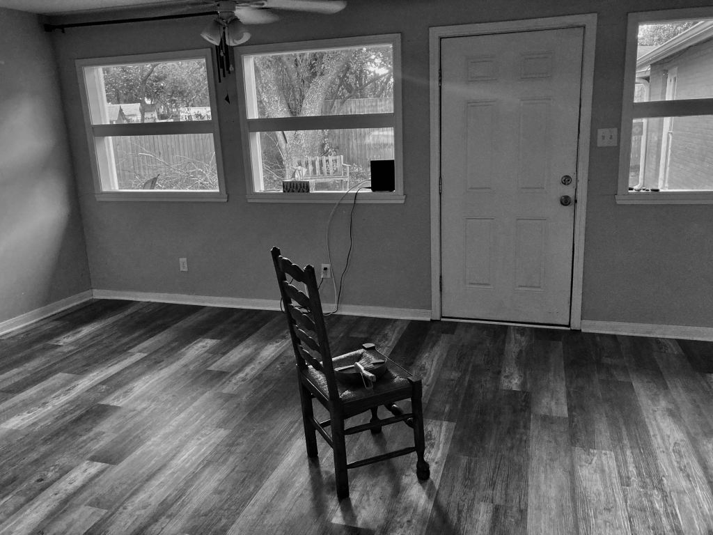 BTW, in the third photo you can see the ceiling fan and the wind chimes hanging from the curtain rod. We love wind chimes and couldn’t find a place outside to hang these. When we turn on the ceiling fan, we can actually hear the wind chimes. We’re thinking of getting more for the ceiling fan in our bedroom.