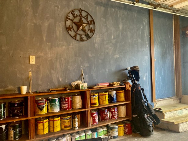 I hate white walls so much, I had to paint the walls in my garage. I love doing things in there, so it does matter. But before any of you say those wretched words: “man cave,” please note that my garage is not a man-cave. It’s a garage. If something needs the adjective “man” before it to make it acceptable, then it has already failed. Men don’t need to apply the word “man” in front of what we do, for legitimacy. We don’t wear buns. We don’t carry purses. We don’t need rooms labeled “man this or that.” In fact, in a man’s house, every room is his. If he is married, like I am, every room is ours. OK, enjoy the photo.