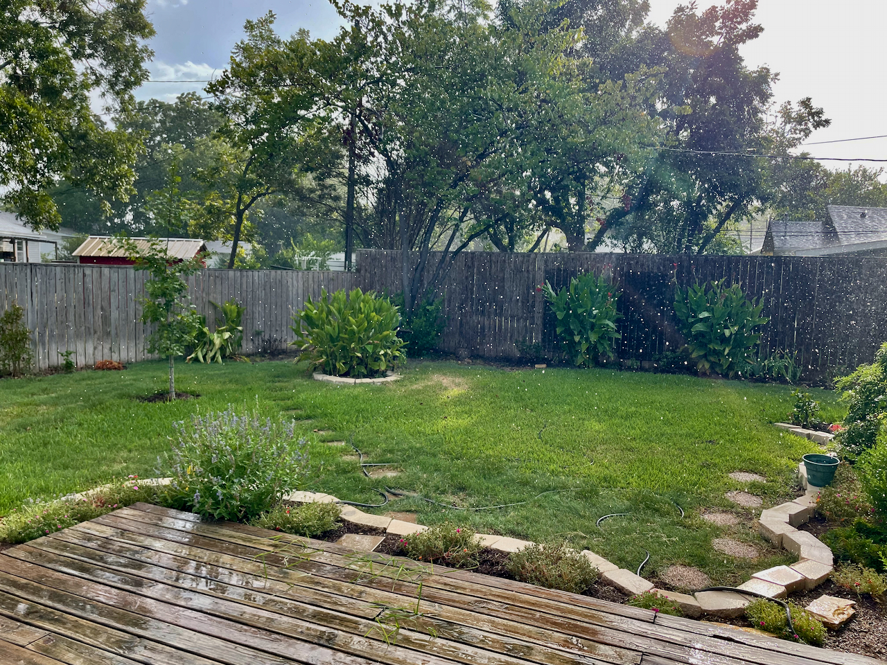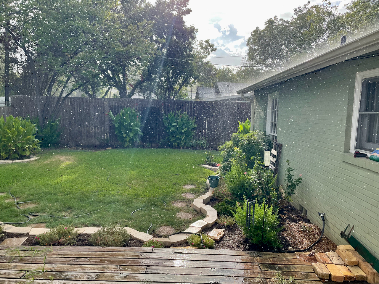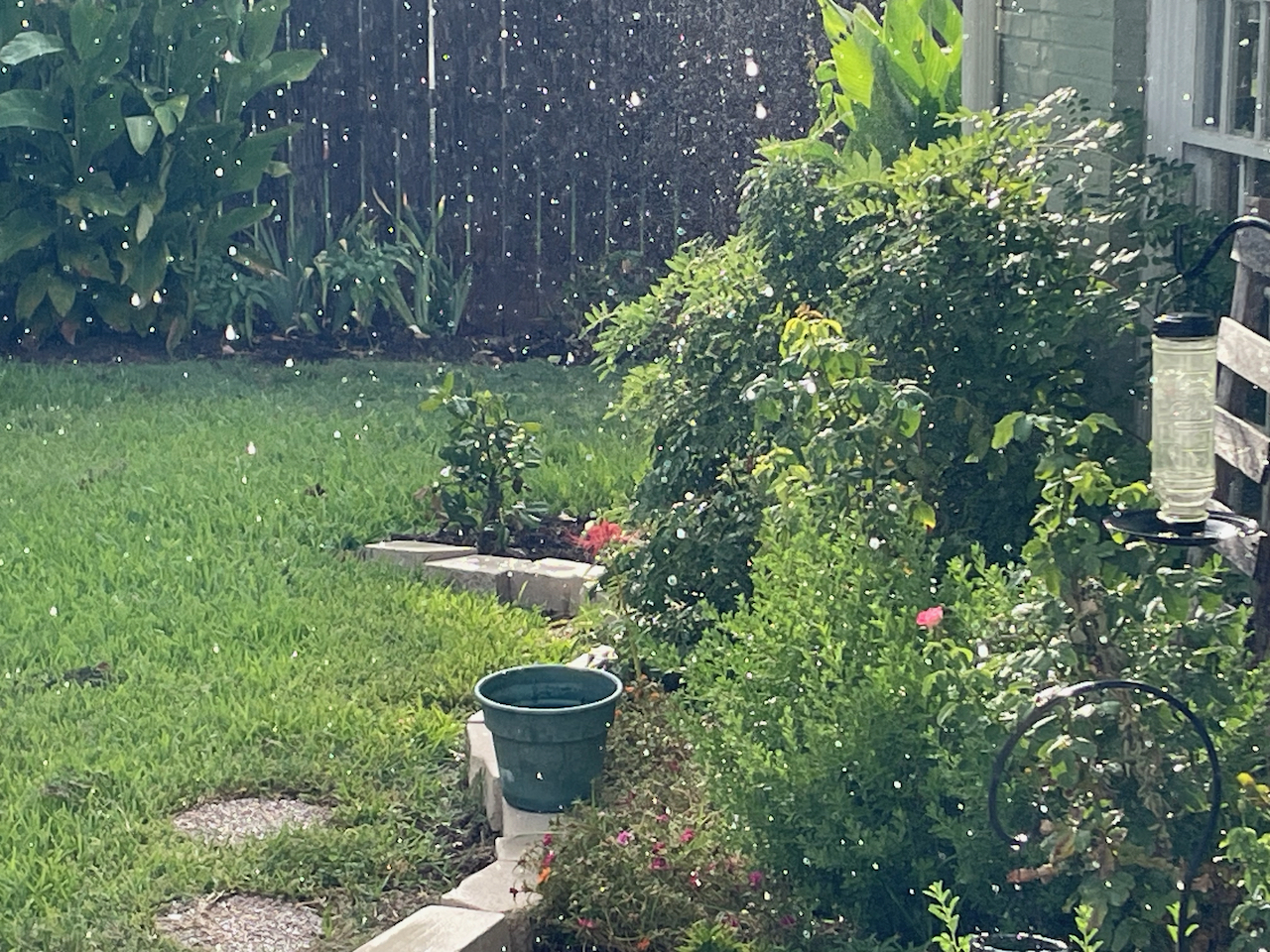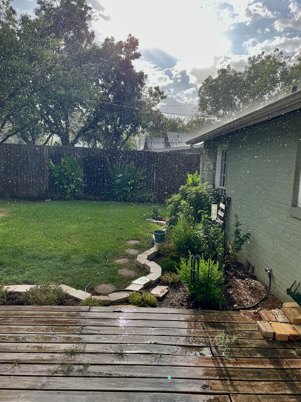 This past Monday, we had an unexpected rain shower. These shots were taken looking out my back door.