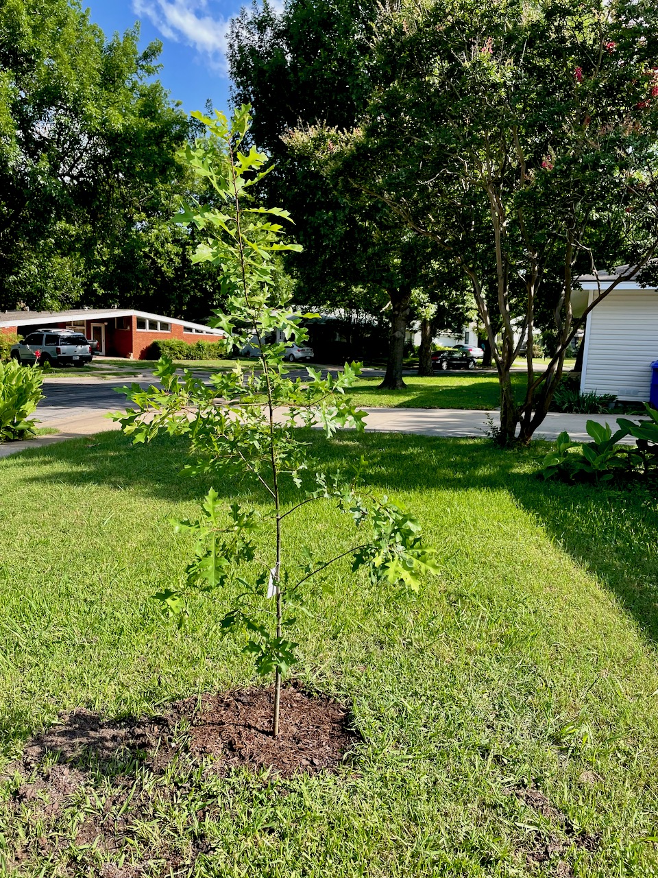But I also got a new tree. If you remember from last week, I tried to transplant a Souther Oak from my front bed to the lower 40. It died quickly.