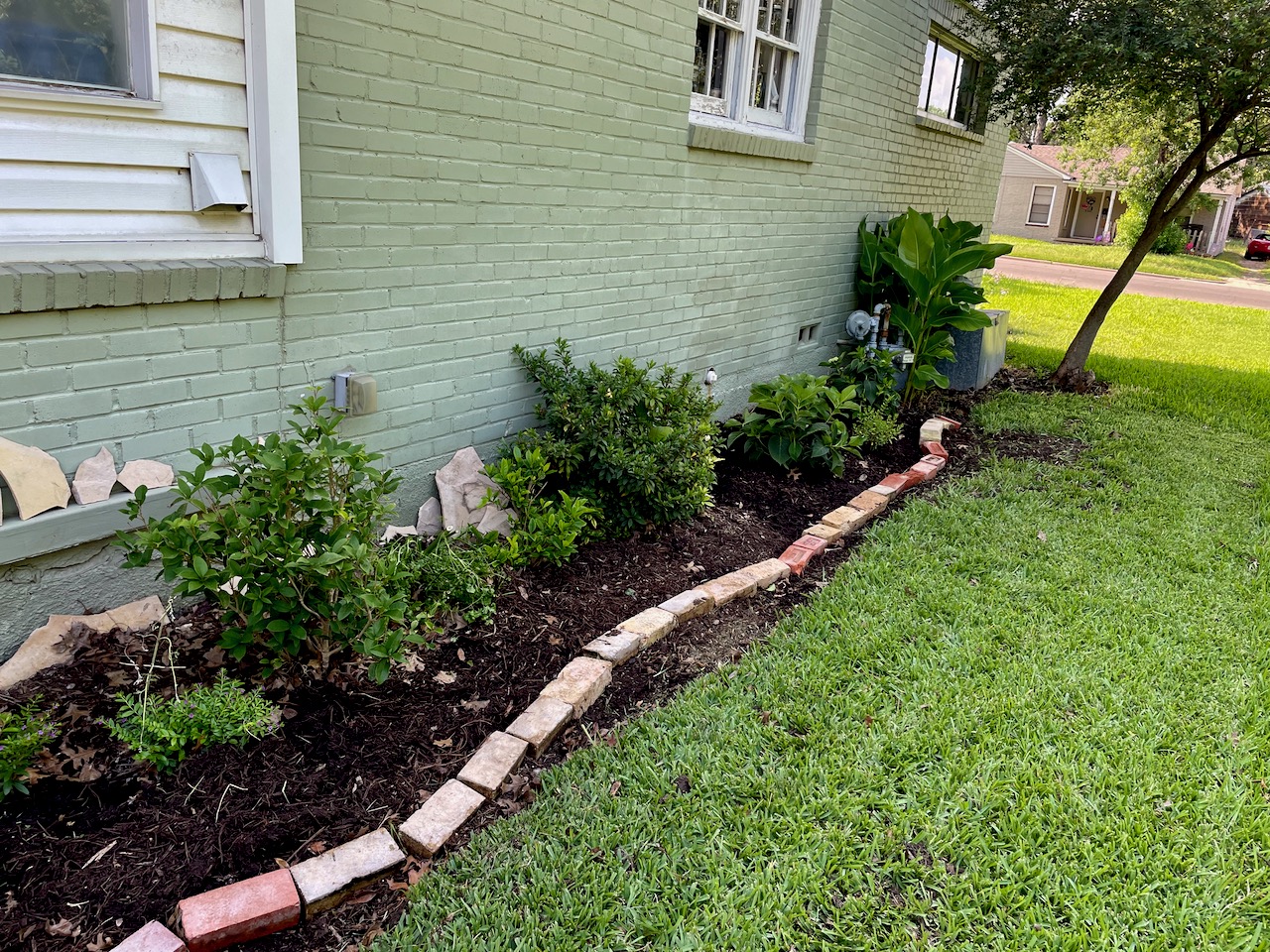 The entire flower bed along the east side of the house…