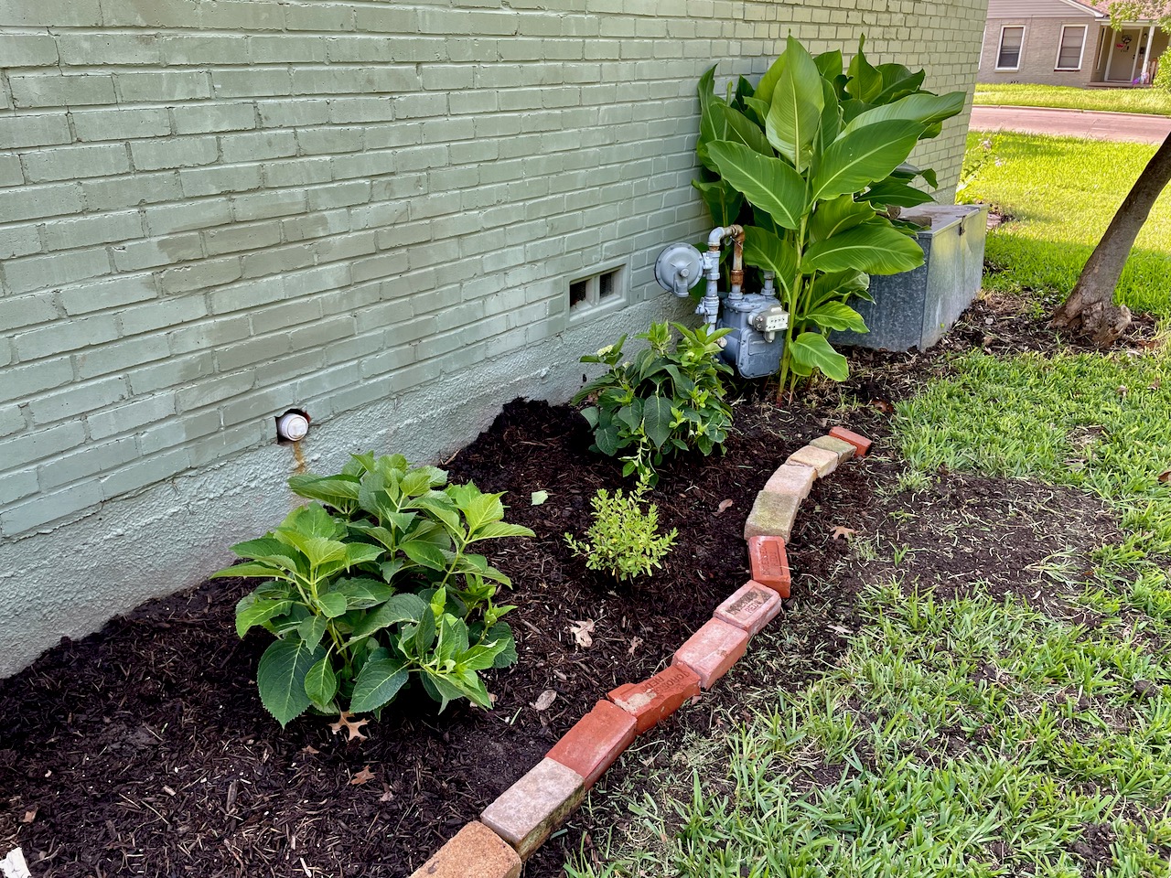 Well, actually, let the digging end. I began a week ago on expanding our flower bed on the east side of the house. Heidi suggested planting a couple of hydrangeas. But in order to do that, I had to remove the grass, which was tough work. I went back and forth between using a pick ax to break up the roots, and a shovel, just digging it all up. The goal is to get ALL the roots so the grass, St. Augustine, doesn’t come back. It will try to come back.